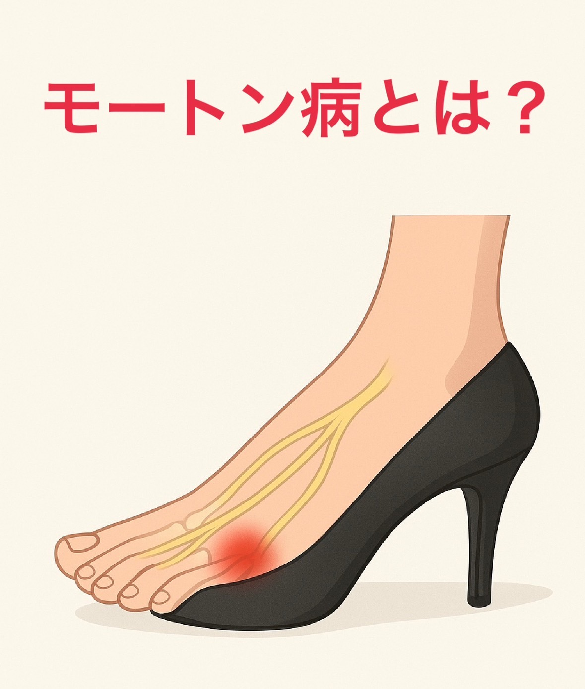 モートン病(Morton’s neuroma)は、足趾(とくに第3・4趾の間)を走る神経が圧迫されることで生じる神経障害です。